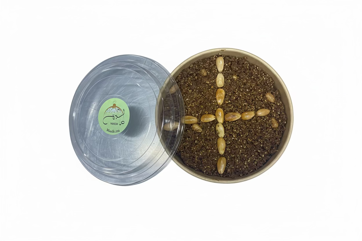 Le Sfouf Amande est une douceur marocaine traditionnelle, appréciée pour sa texture moelleuse et son goût délicatement parfumé. Préparé à base de farine, d’amandes moulues et de sucre, il est subtilement aromatisé à la fleur d’oranger et relevé d’une pointe de cannelle.